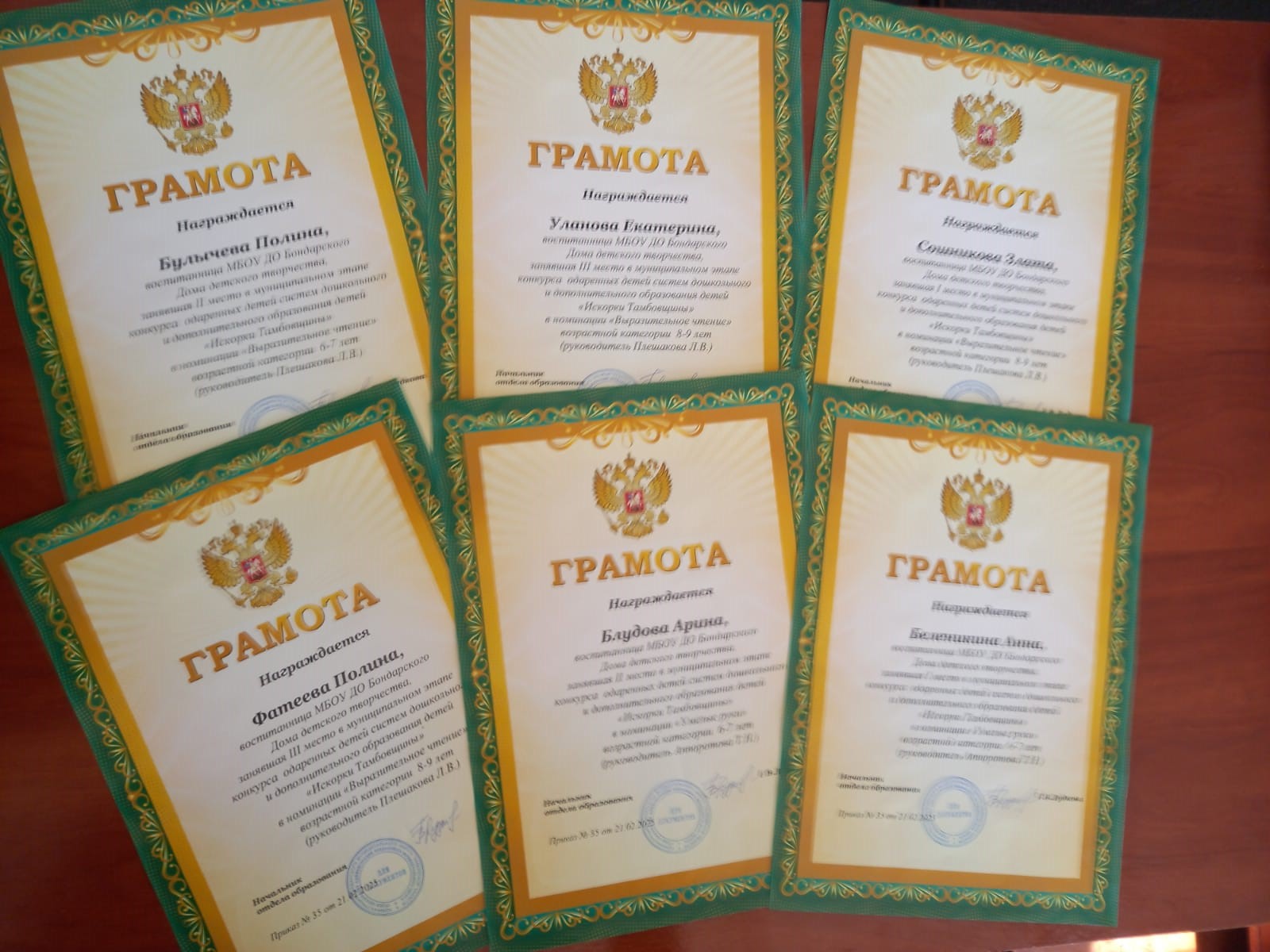 В номинации «Выразительное чтение» в возрастной категории 6-7 лет 2 место заняла Булычева Полина. В возрастной категории 8-9 лет 1 место у Сошниковой Златы, а 3 место поделили между собой Уланова Екатерина и
