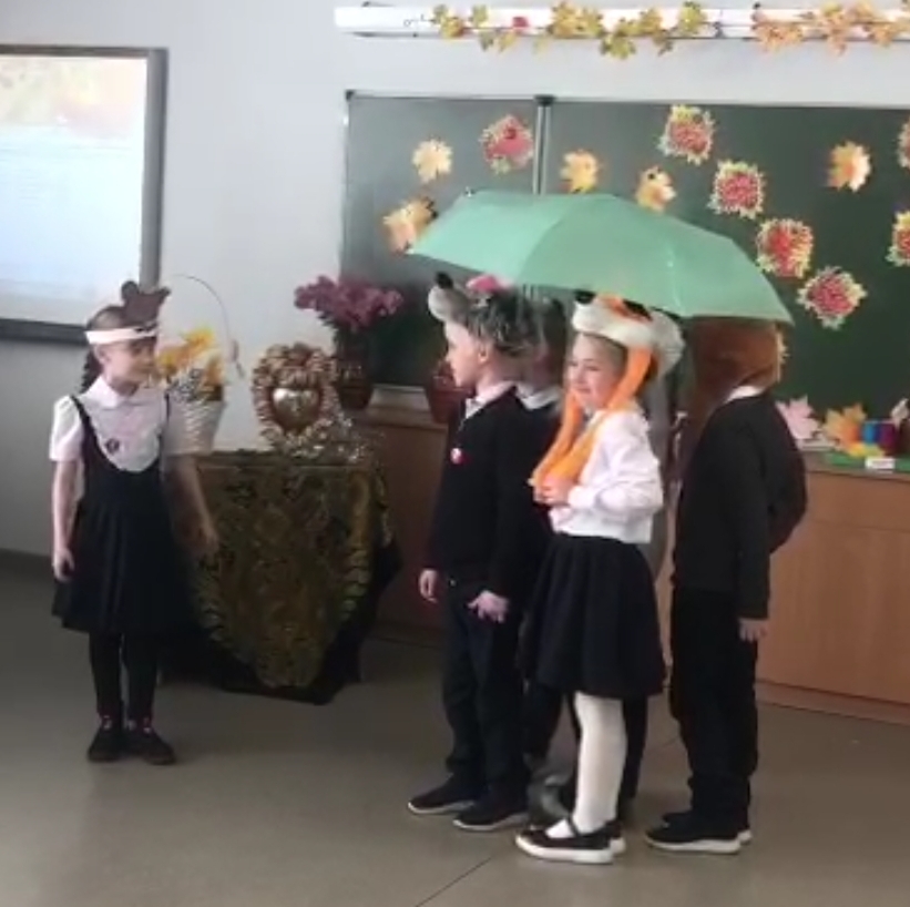 В конкурсно – игровую программу «Осень» д/о «Теремок» кроме тематических игр, загадок, конкурсов, танца «Листопад» была включена миниатюра «Катя под дождем». Приближается зима, наступают холода, лесным жителям становится тяжелей. Но спасение они находят под зонтом доброй девочки Кати. А из другой миниатюры ребята узнали, как звери готовятся к зиме.