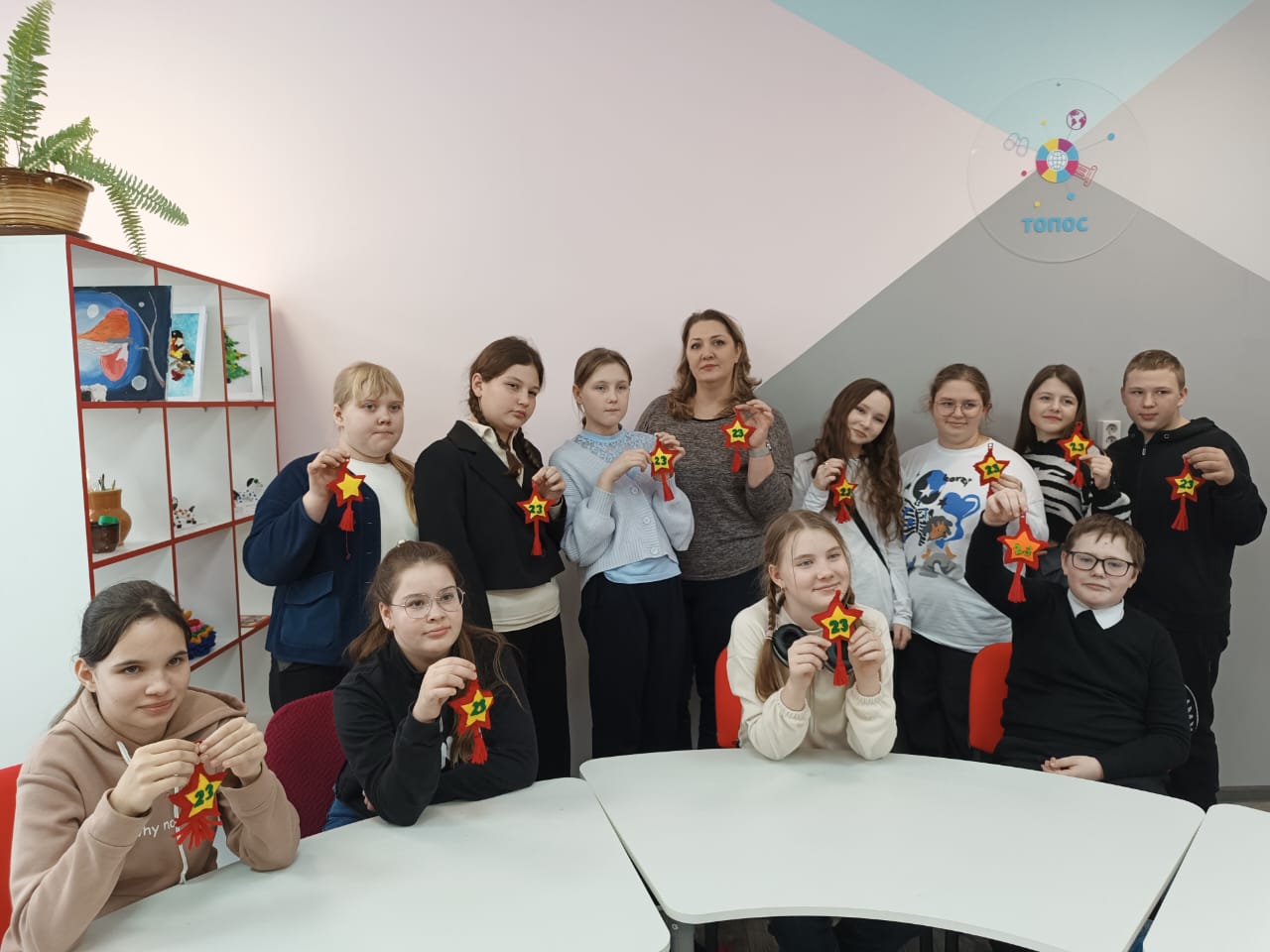 Мастер-класс начался с беседы педагога о том, что 2025 год объявлен годом защитника Отечества. На занятии дети с удовольствием сделали брелки в виде пятиконечной звезды для своих пап, друзей, дедушек к 23 февраля.